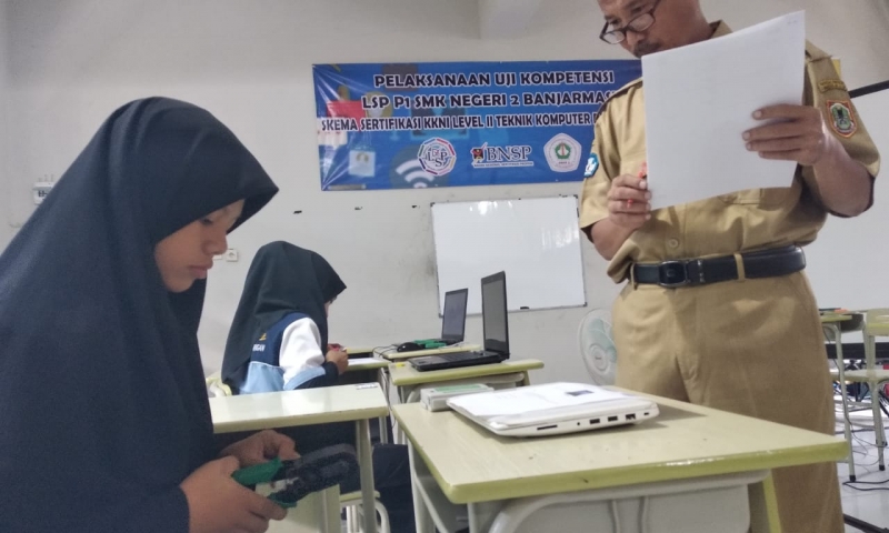 Beberapa siswa(i) SMK Negeri 2 Banjarmasin mengikuti uji Standar Kompetensi Kerja Nasional Indonesia (SKKNI) Level II yang diselenggarakan oleh LSP P1 SMK Negeri 2 Banjarmasin. Uji kompetensi ini terdiri dari 5 Skema diantaranya,